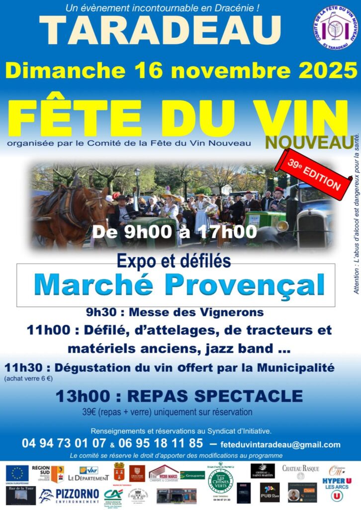 Le Comité de la fête du vin nouveau de Taradeau, association indépendante, organise chaque année la traditionnelle fête du vin nouveau.