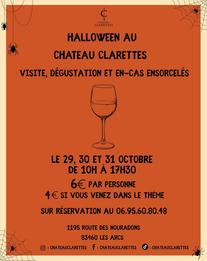 Venez (re)découvrir notre domaine lors de visites-dégustations spéciales Halloween Au programme : dégustation de nos vins accompagnée de quelques amuse-bouches.