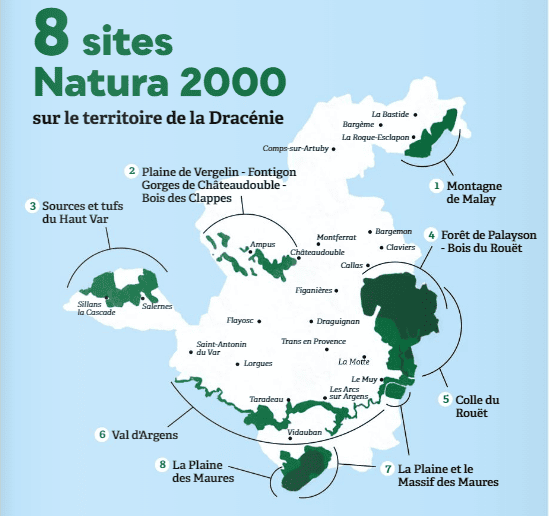 Aujourd’hui, on dénombre 8 sites Natura 2000 et 20 Espaces Naturels Sensibles (ENS) sur le territoire de Dracénie Provence Verdon agglomération et qui font l’objet d’une attention toute particulière.